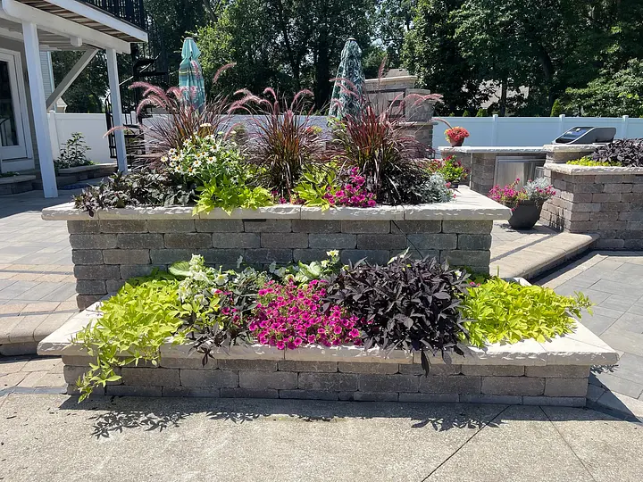 Patios, walkways, retaining walls, steps, and other structural features that define outdoor space and improve how it functions.